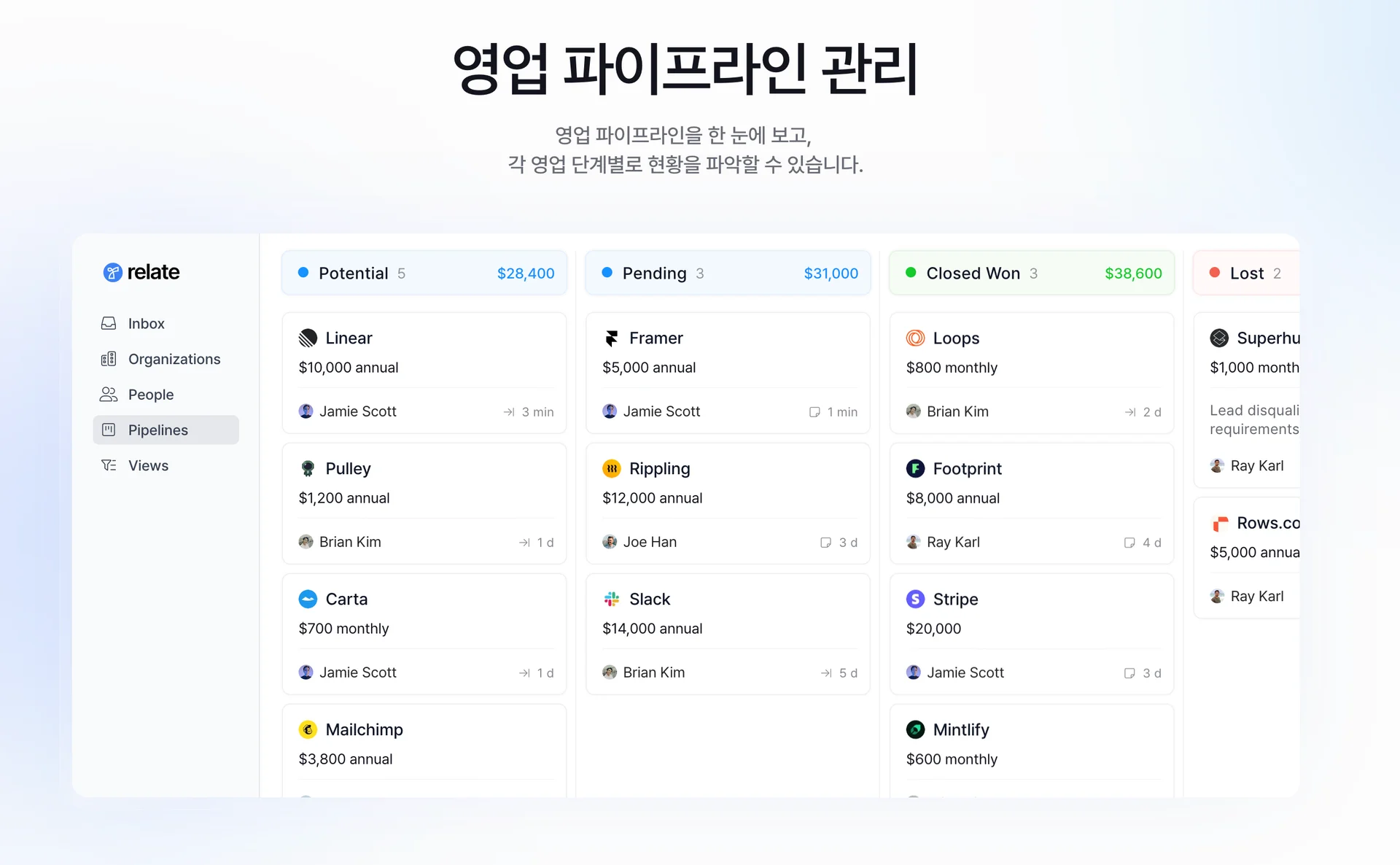 심플한 B2B 영업 CRM, 릴레잇의 사례를 보겠습니다.